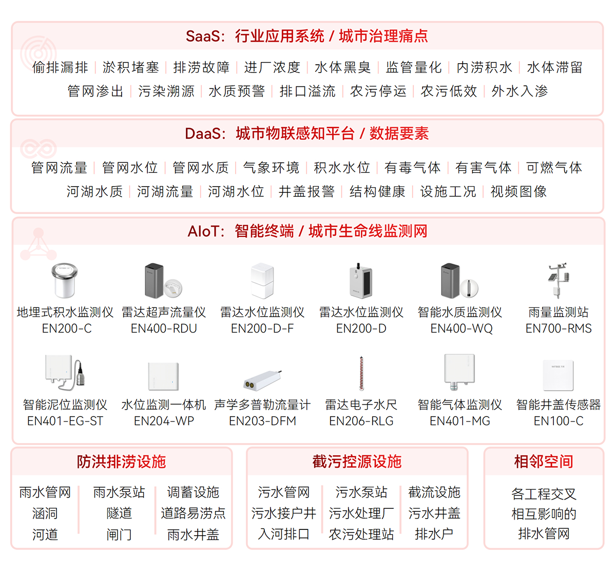 對排水設(shè)施(雨污水管網(wǎng)、窨井蓋、截流泵站、提升泵站、抽水泵站、農(nóng)村污水處理站、溢流井、排水井、污水處理廠、調(diào)蓄設(shè)施等)關(guān)鍵節(jié)點、易澇積水點,河湖水位、流速,管網(wǎng)液位、流速、水質(zhì),內(nèi)澇積水等指標(biāo)進行實時數(shù)據(jù)監(jiān)測,形成設(shè)施完整、拓撲清晰、位置準(zhǔn)確的排水設(shè)施“一張圖”,為排水空間規(guī)劃、設(shè)計、排水設(shè)施改造提供決策支持。