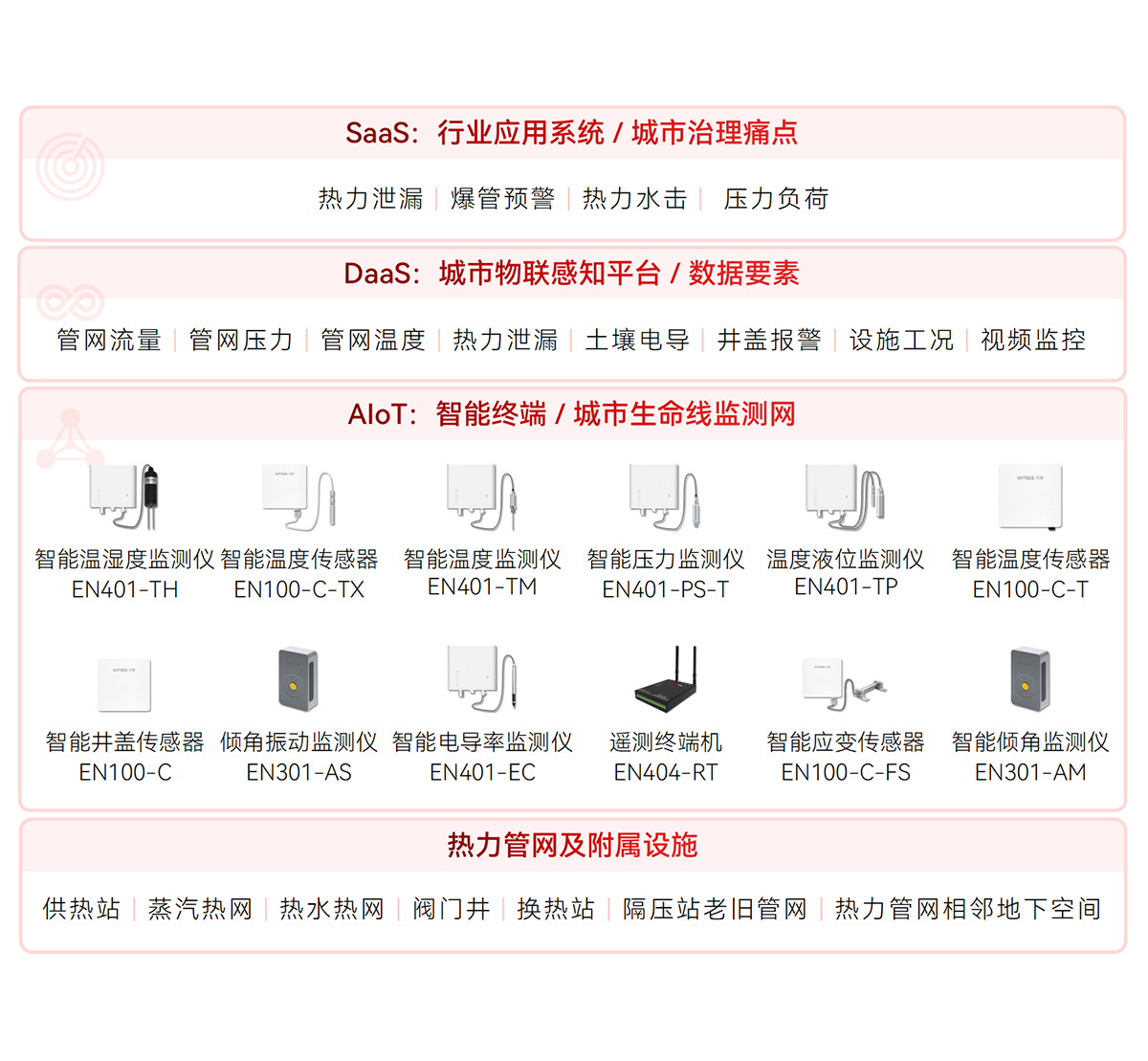 對供熱管網(wǎng)的蒸汽管道排潮孔溫度、疏水箱壓力,熱水管網(wǎng)土壤溫度,管網(wǎng)流量、壓力,井蓋異動等指標(biāo)進行實時監(jiān)測,構(gòu)建供熱管網(wǎng)綜合管理的動態(tài)監(jiān)測網(wǎng)絡(luò),保證整個城市供熱穩(wěn)定安全運行。